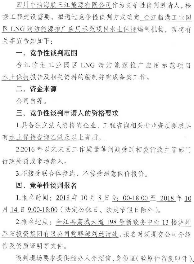 合江臨港工業(yè)園區LNG清潔能源推廣應用示范項目水土保持報告單位競爭性談判公告.docx