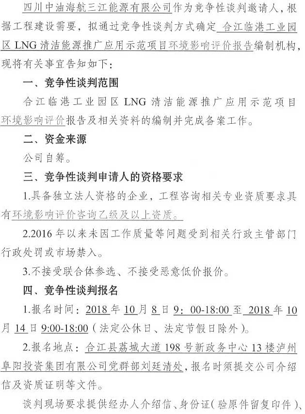 合江臨港工業(yè)園區LNG清潔能源推廣應用示范項目環(huán)境影響評價(jià)單位競爭性談判公告.docx