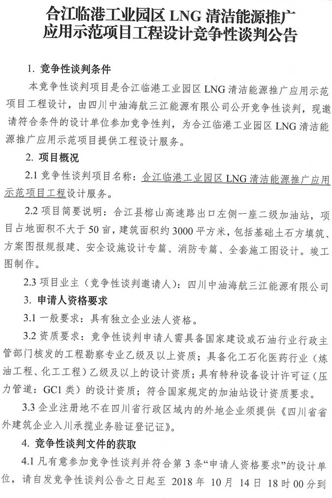 合江臨港工業(yè)園區LNG清潔能源推廣應用示范項目工程設計競爭性談判公告.docx